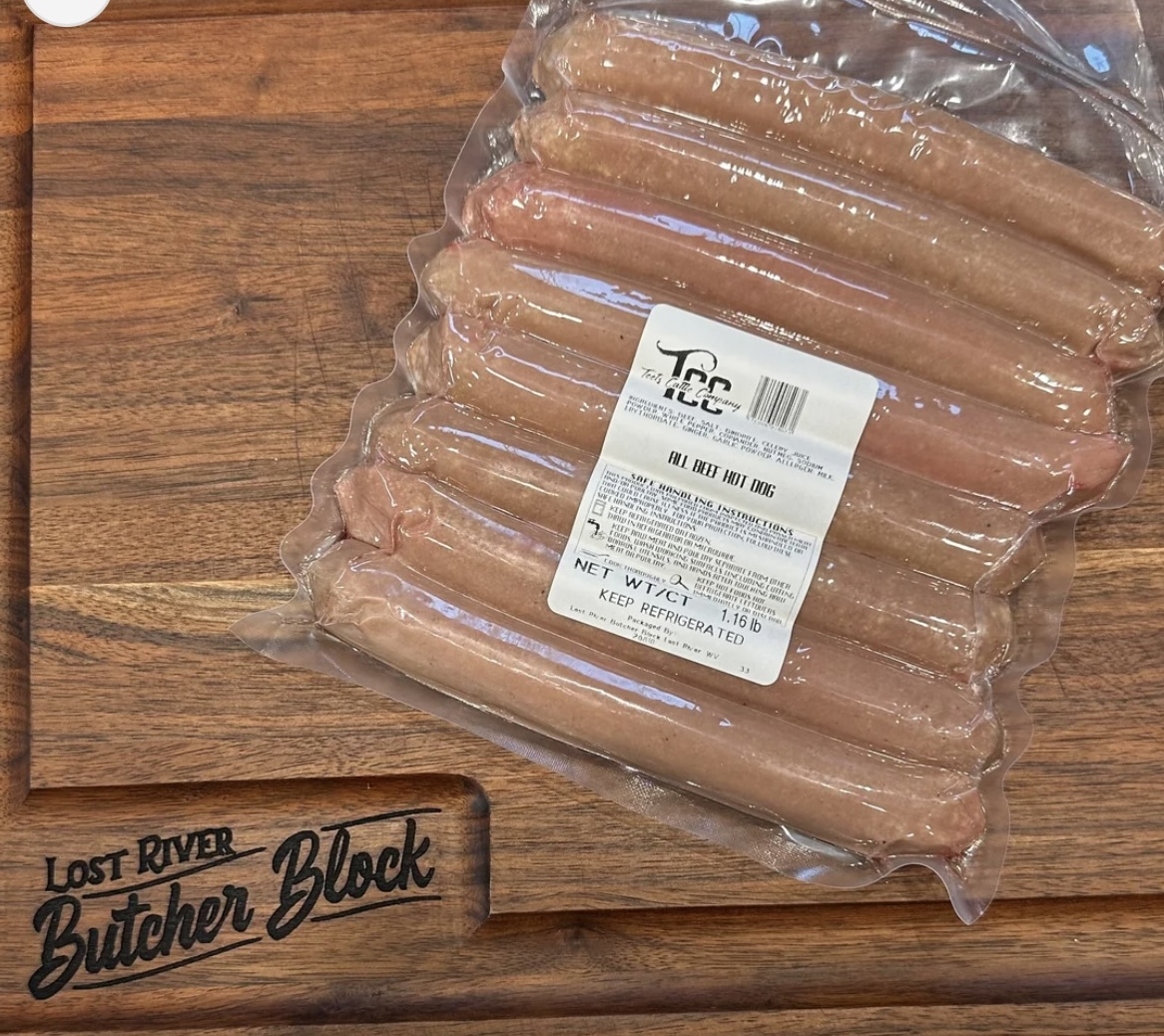 Teets All Beef Hot Dogs are made from all beef in the smoker at Lost River Butcher Block....all you need to bring is your buns!!